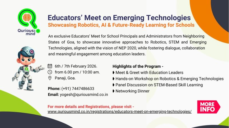 At Qurious Mind Infotainment Pvt Ltd, we are passionate about bringing the world of Robotics and STEM Education to young learners across Goa. Through our Hands-On Workshops, Interactive Courses, and Fun-Filled Camps, we aim to ignite Curiosity and build Future-Ready Skills among students.