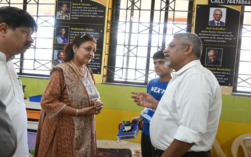 The visit was graced by Mr. Manish Pareek and Mrs. Leena Jetly (Independent Directors, ONGC) and Mr. Shrikant Ughade (ONGC CSR Coordinator). The team was welcomed by students and trainers from Qurious Mind Infotainment Pvt. Ltd., the organization behind setting up the STEM Lab under ONGC’s Corporate Social Responsibility (CSR) initiative.